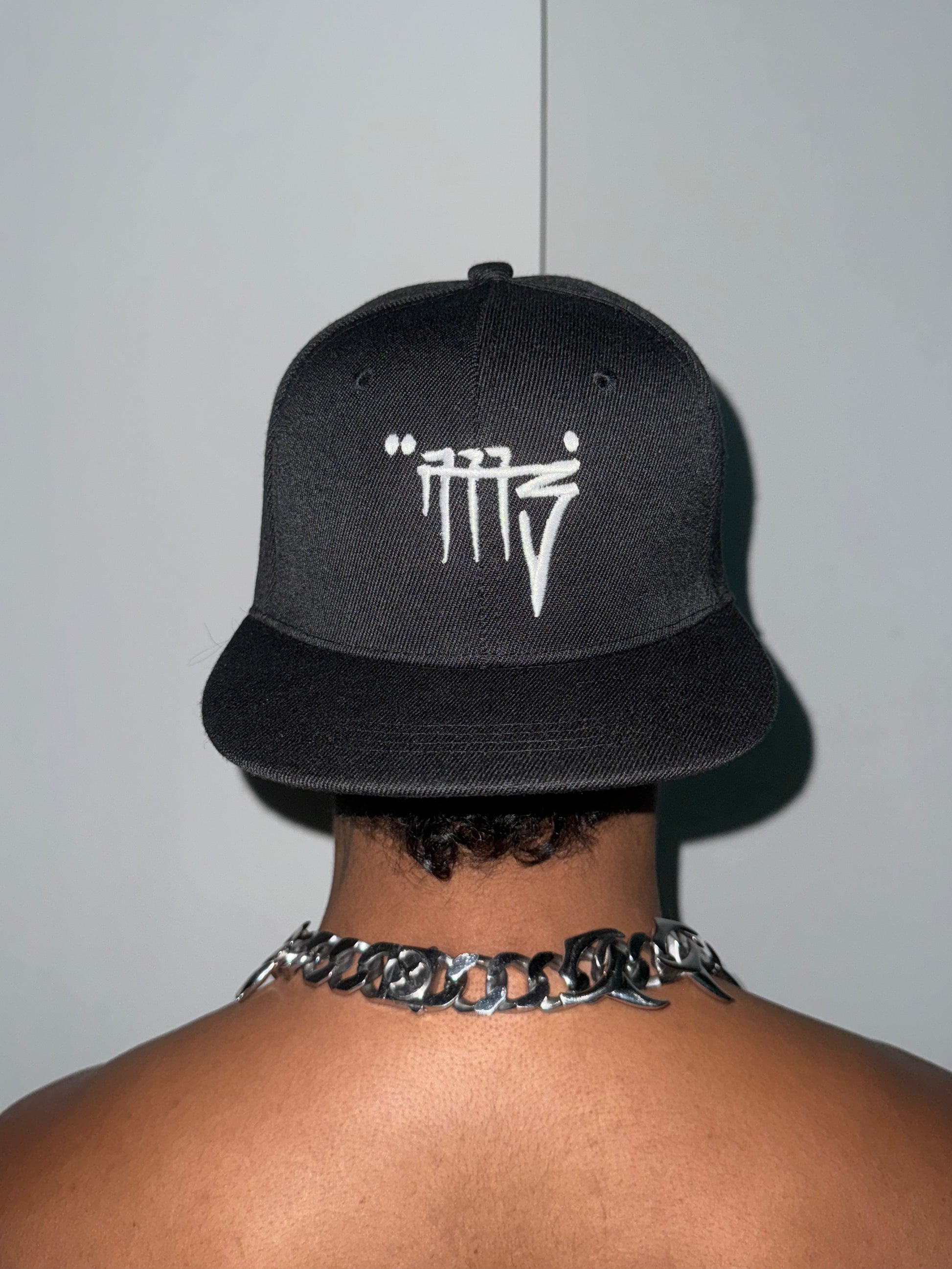 THIS BLACK SNAPBACK F3ATUR3S TH3MYSTICMISFIT SIGIL 3MBROID3R3D FRONT AND C3NT3R. A MARK OF THOS3 WHO WALK OUTSID3 TH3 LIN3S.